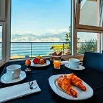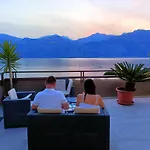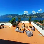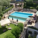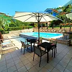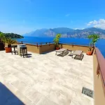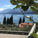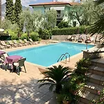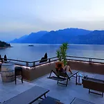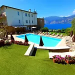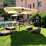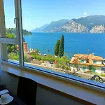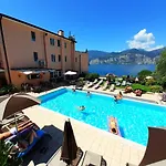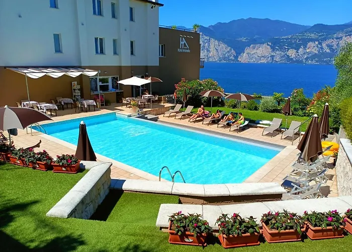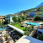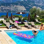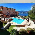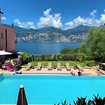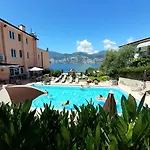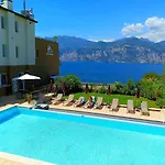 Gasten van dit hotel in Malcesine kunnen zich bij een zwembad ontspannen.